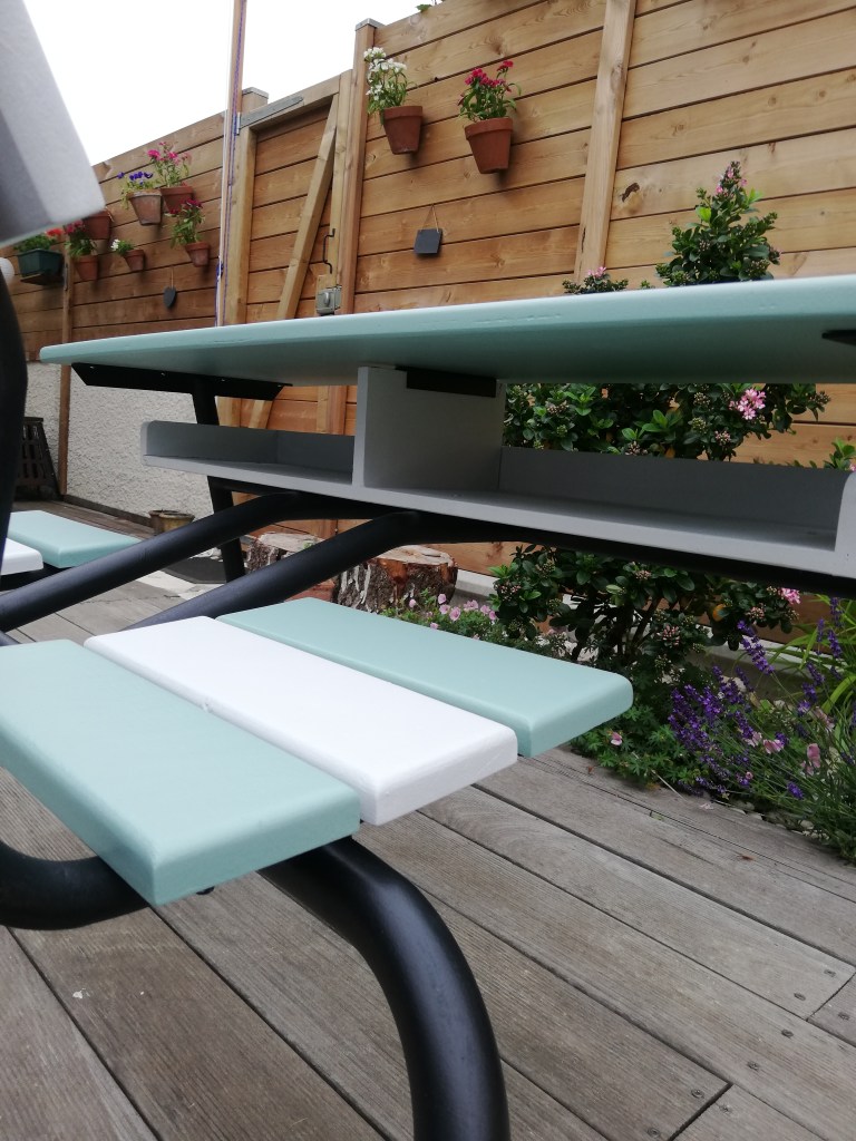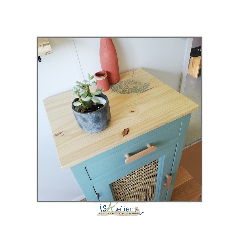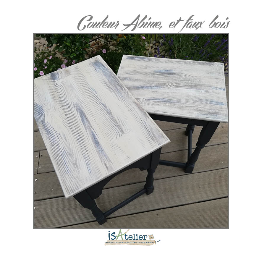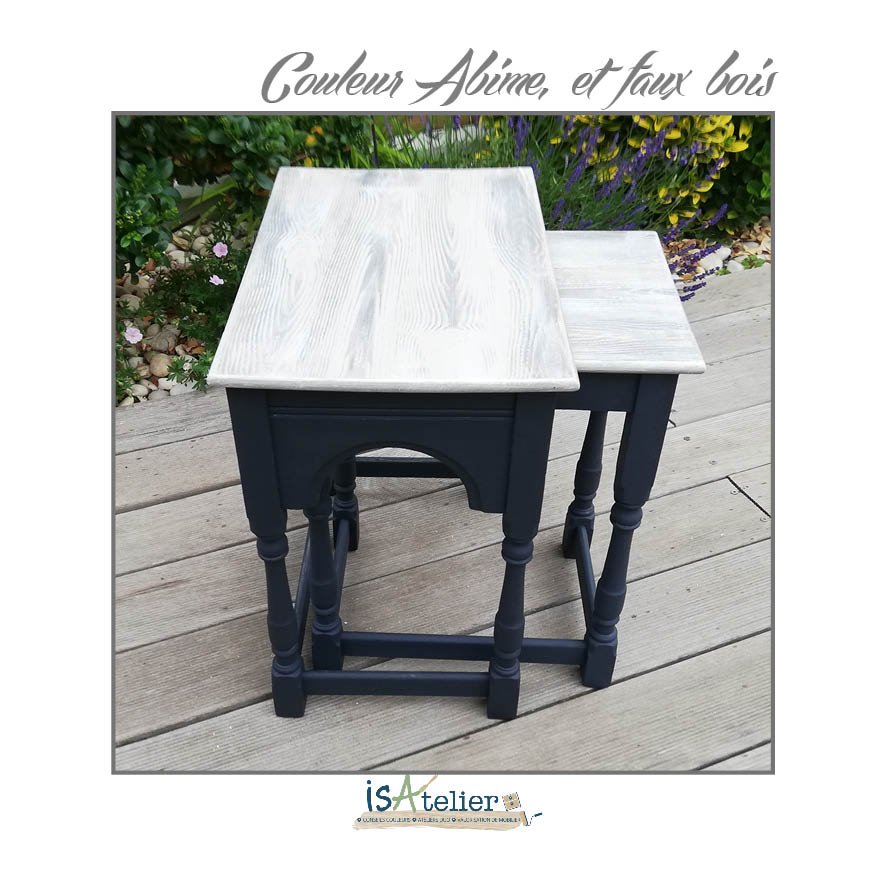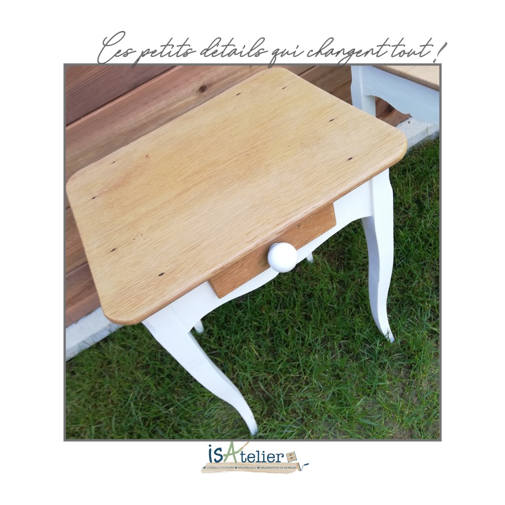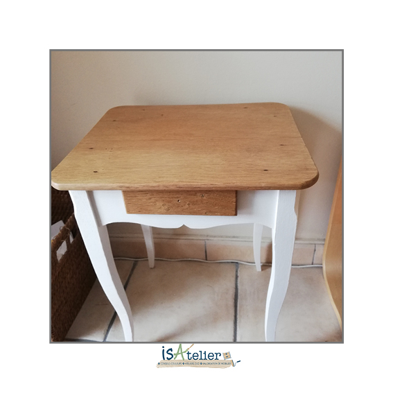 Petite table ancienne, relookée, mais peu rénovée pour éviter de tomber dans le piège de la remise à neuf.