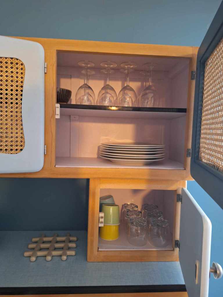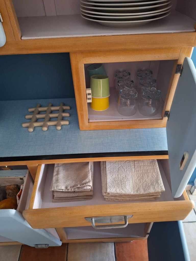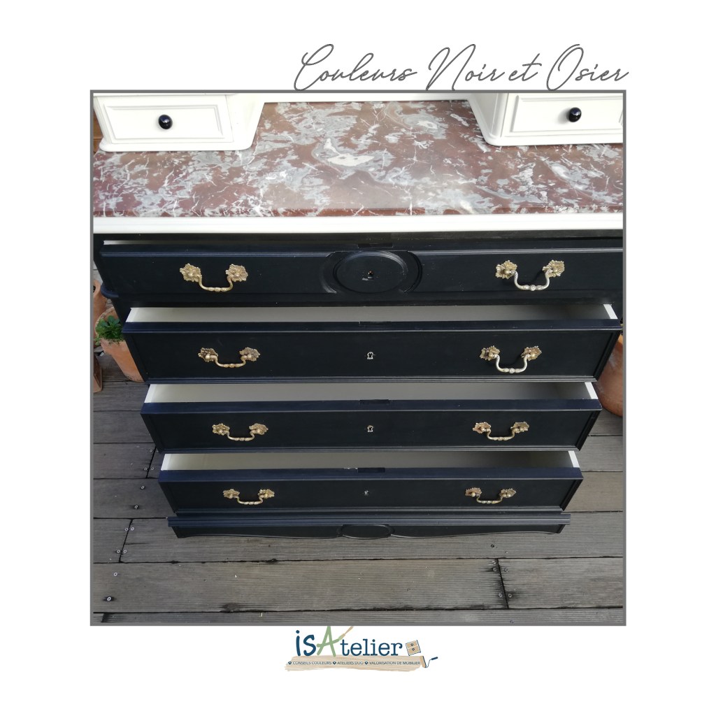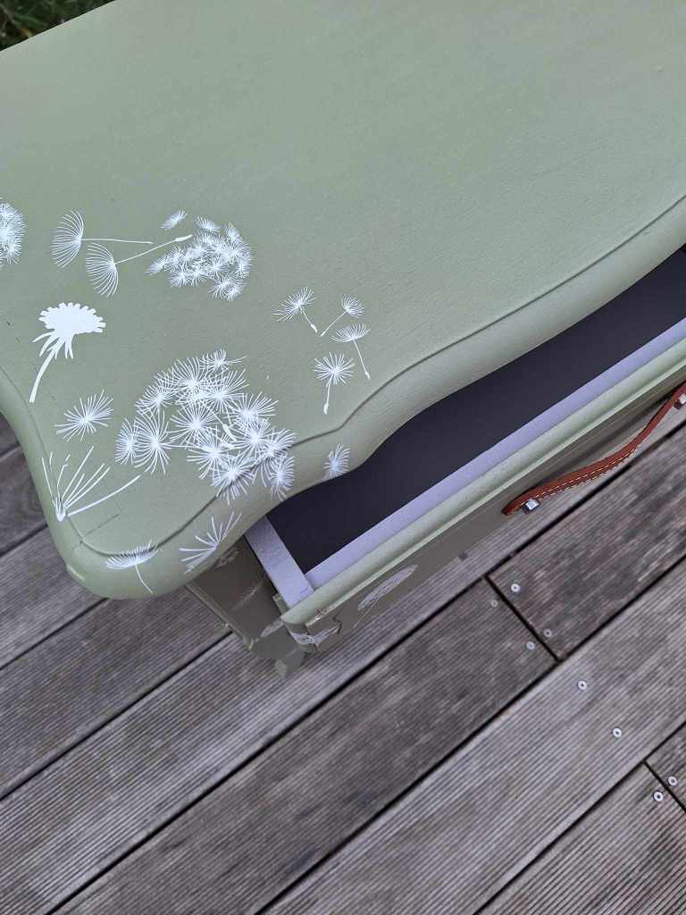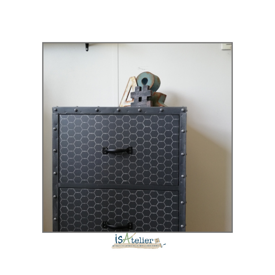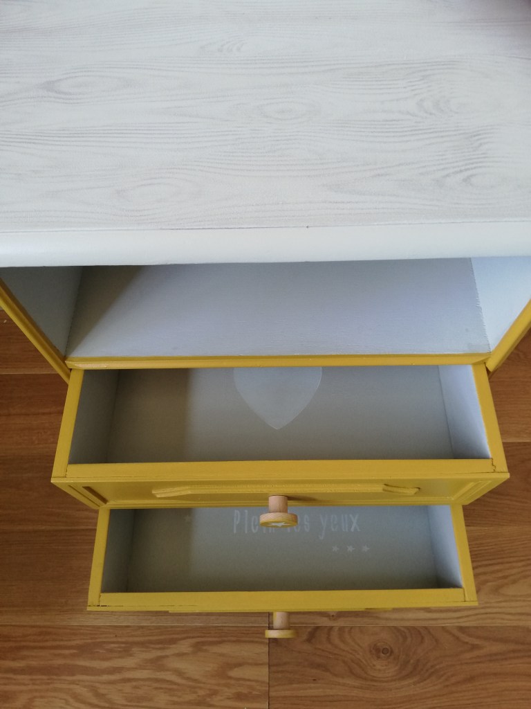 Une coquetterie de pochoir est à l’interieur du tiroir