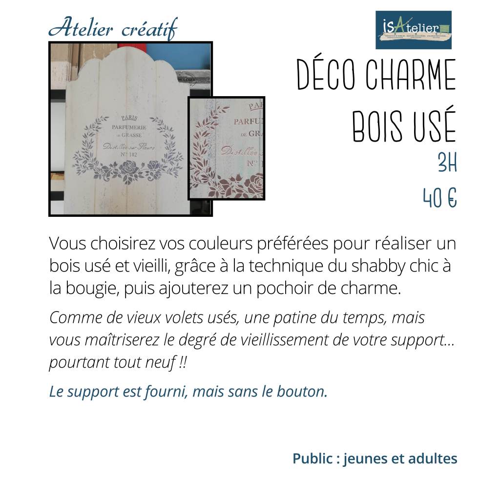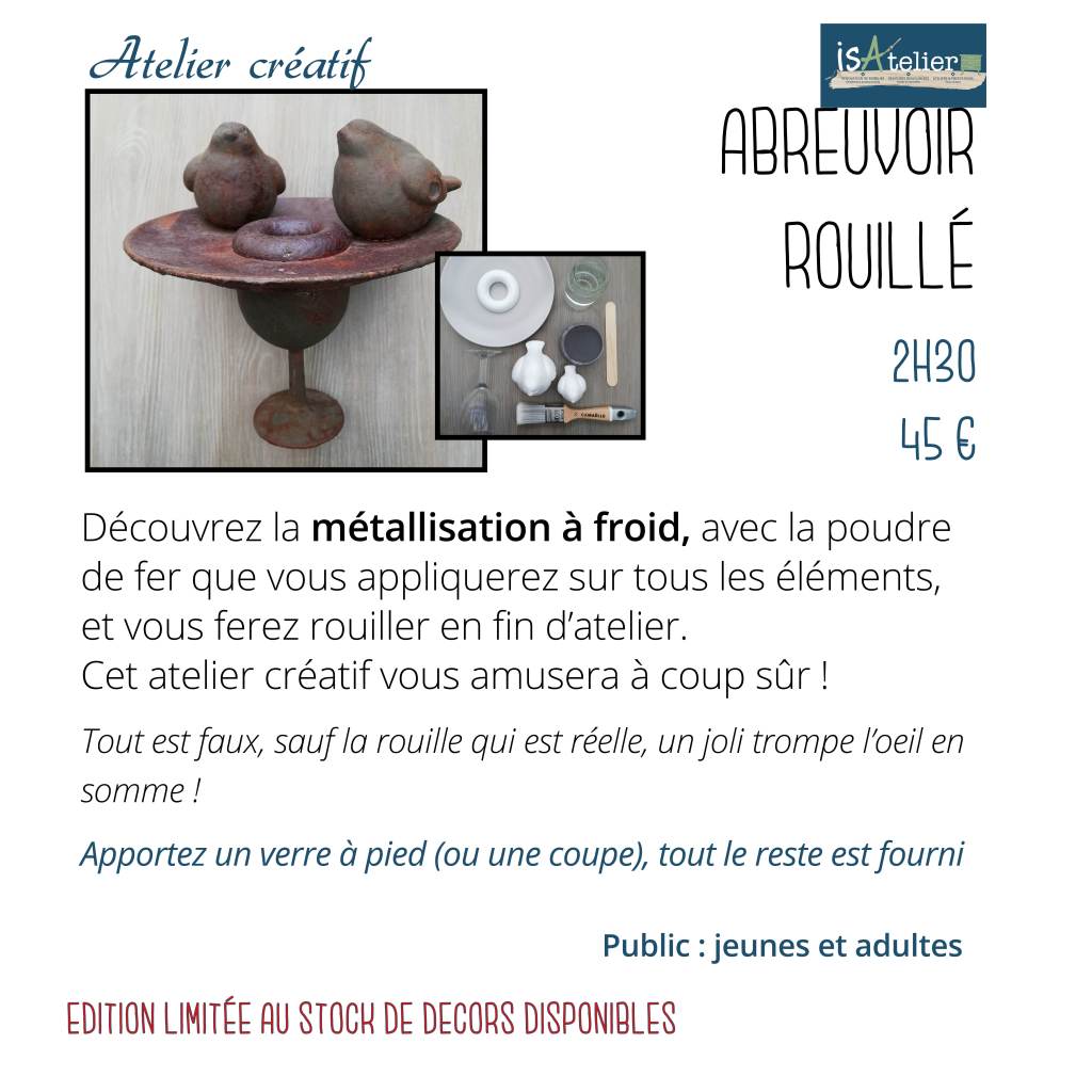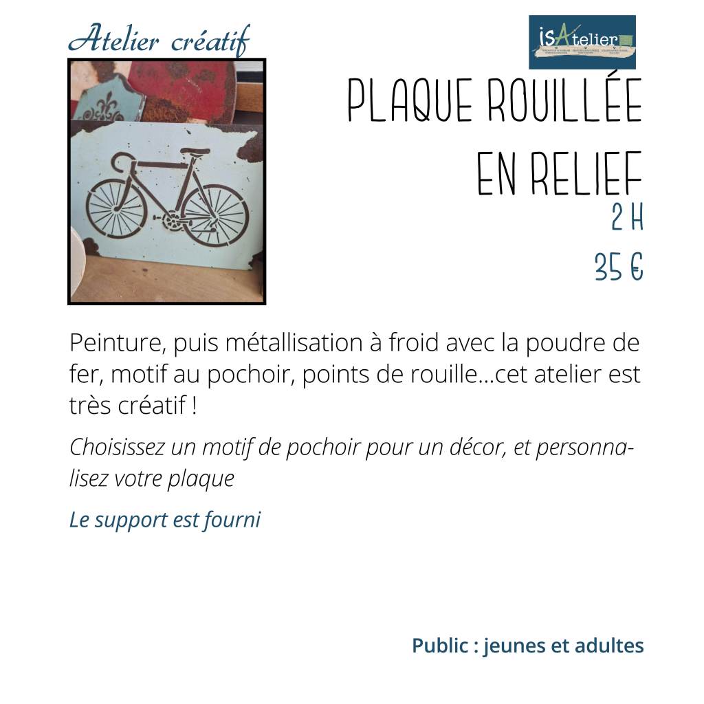 L’atelier se situe chez Isabelle MOREAU 14 rue de la vanoise 78180 MONTIGNY LE BRETONNEUX – sur rendez vous, accès différencié pour l’atelier