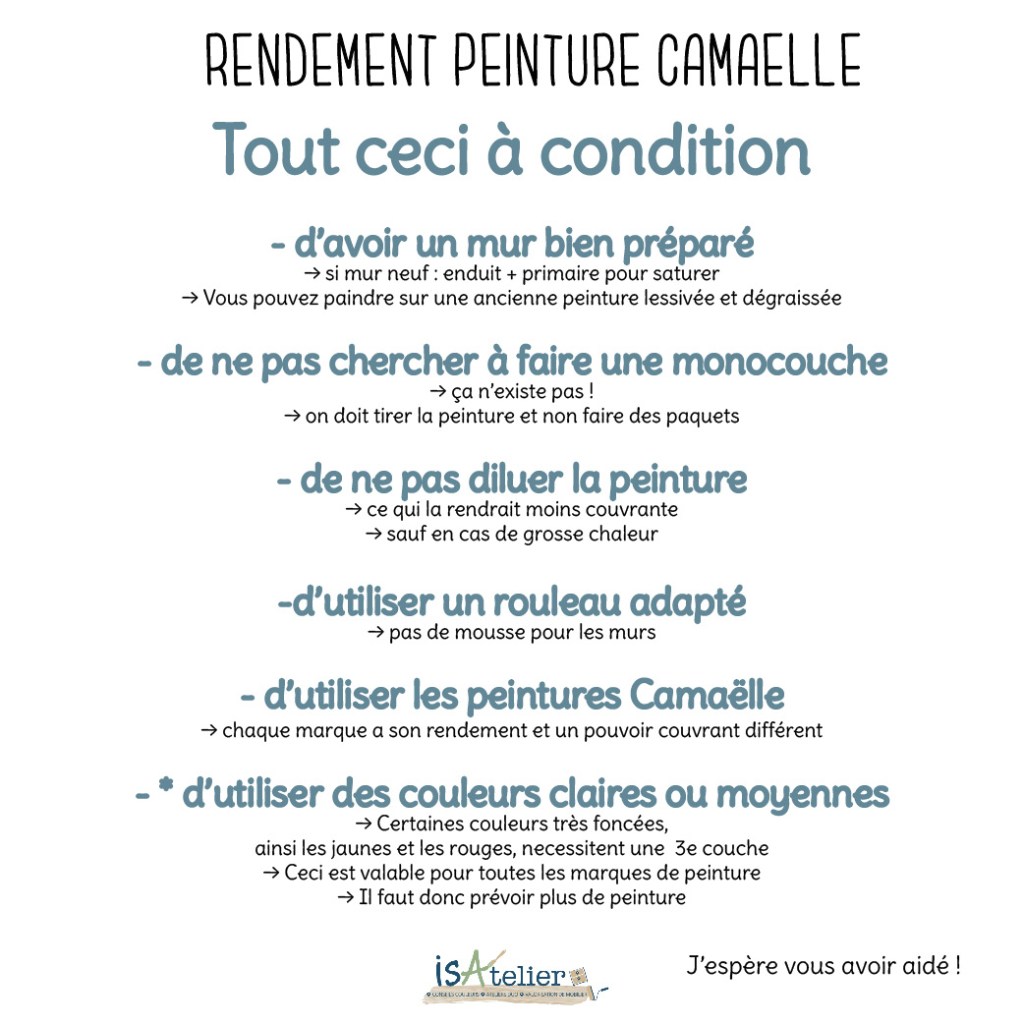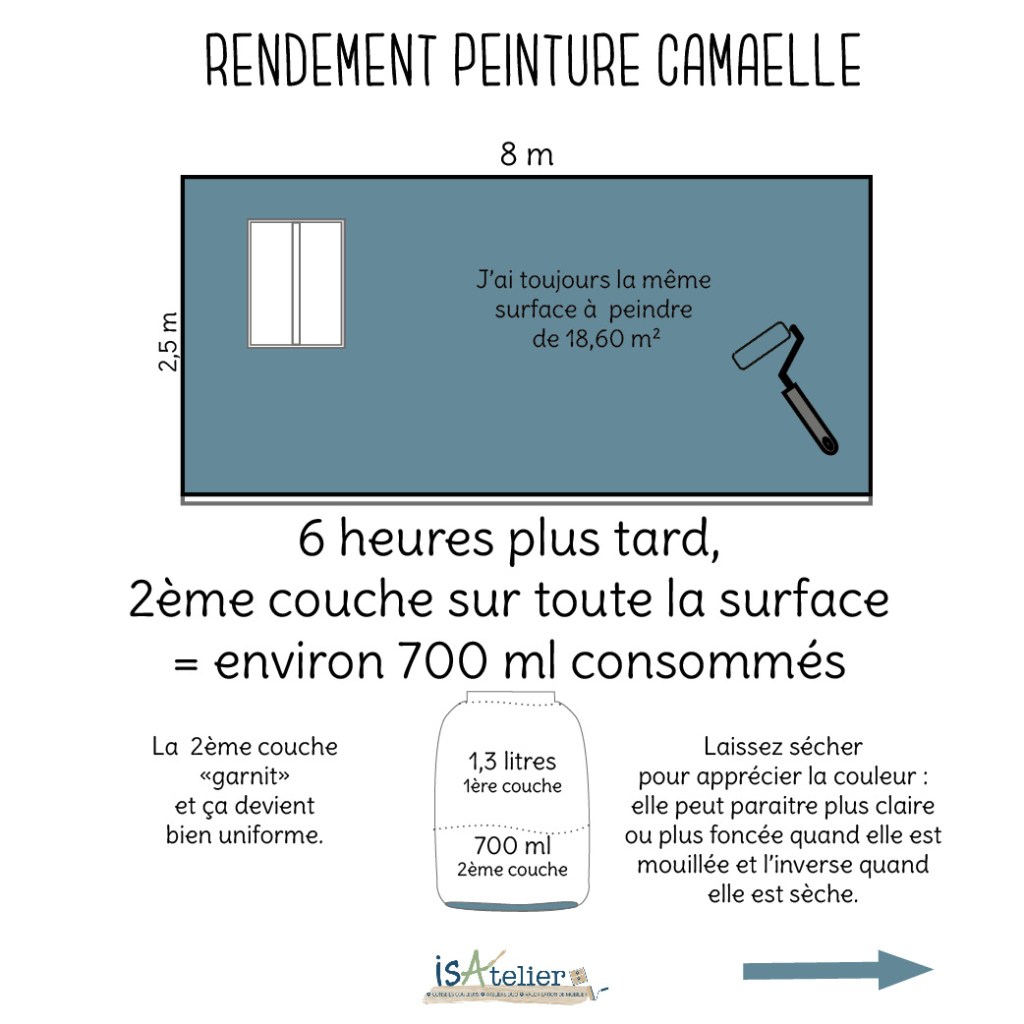 Et surtout retenez bien que c’est la peinture Camaëlle que j’utilise, et je la connais par coeur, je peins beaucoup de murs moi même, je l’ai testée, éprouvée, validée, mes enfants, mes amis et vous, mes clients peuvez en témoigner : ON NE PANIQUE PAS quand le pot se vide à la 1ère couche !